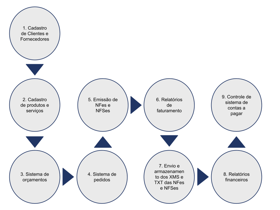 2.2 Automatizar processos: após a determinação das rotinas é importante investir em sistemas de emissão e gestão de NFes e NFSes que auxiliem nesse processo. Sistemas integrados são extremamente eficientes e para empresas de micro e pequeno porte podem ser importantíssimos aliados, inclusive na redução de custos e de desperdício de tempo.