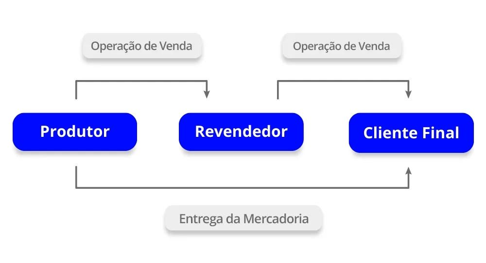 Na operação triangular, que também é conhecida como uma operação de venda à ordem, há três figuras centrais. O produtor da mercadoria; o revendedor, que adquire o produto do produtor para revenda; e o consumidor final.
