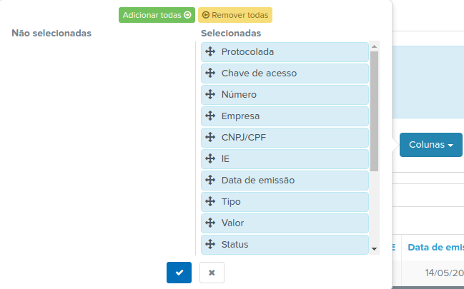 Coluna de NFCes protocoladas