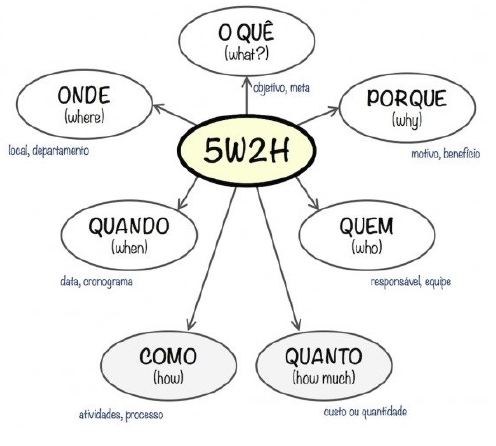 A ferramenta conhecida como 5W2H funciona como um checklist do planejamento estratégico. A sigla remete a sete questões que norteiam tanto a confecção do plano quanto a execução. São elas: