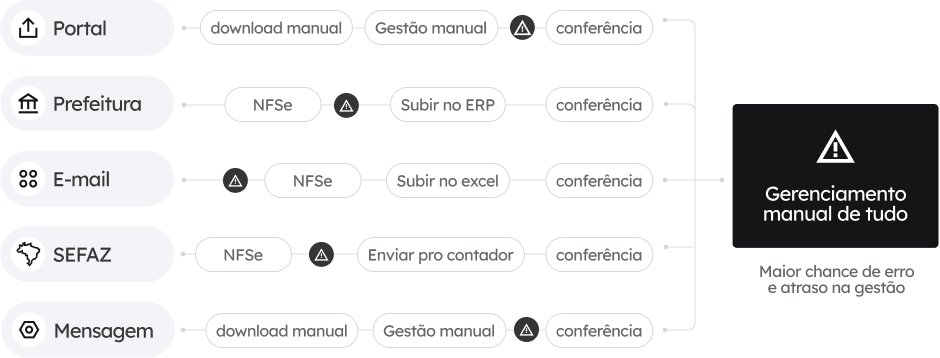 São diversas tecnologias combinadas em um fluxo de recebimento estruturado controle e gestão de notas fiscais de serviço integrado aos ERPs para cadastros, conferências e apurações.