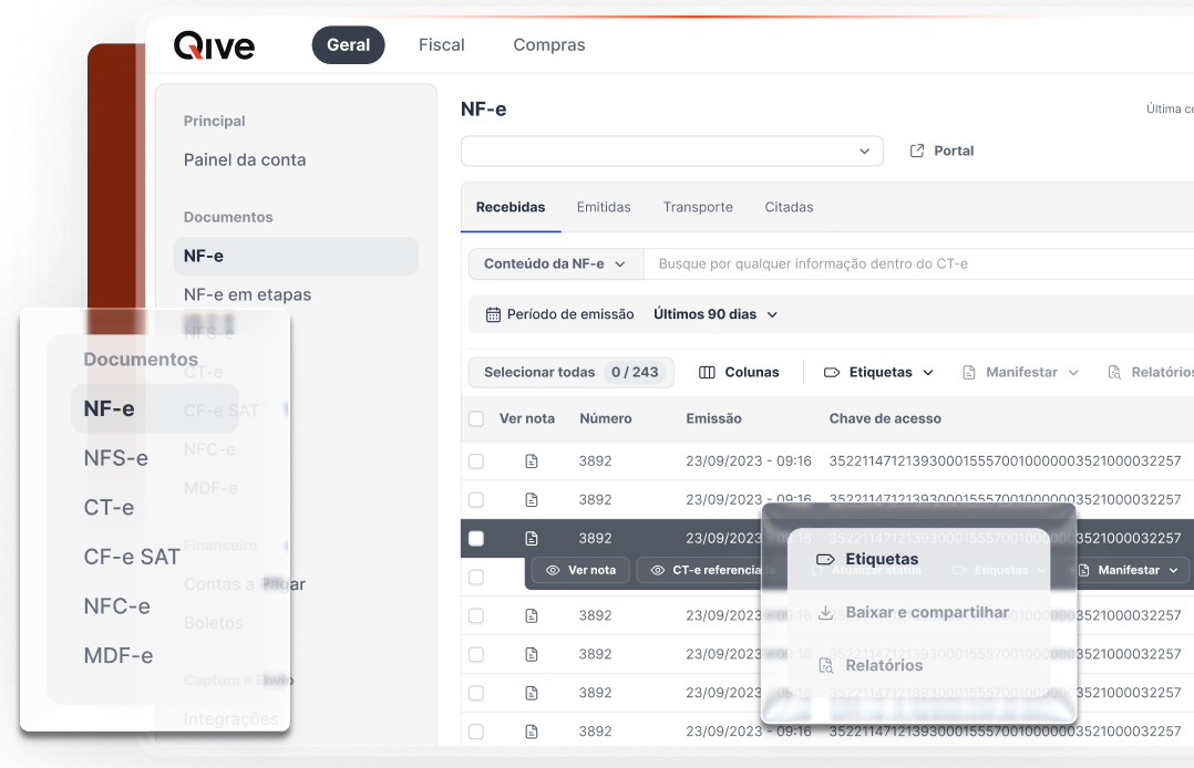 Com a Qive, você otimiza a gestão de NFes, CTes e NFSes com um sistema de etiquetas, anotações e comentários, facilitando a comunicação em equipe e trazendo agilidade para a operação.