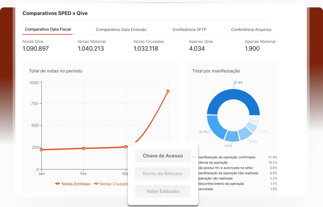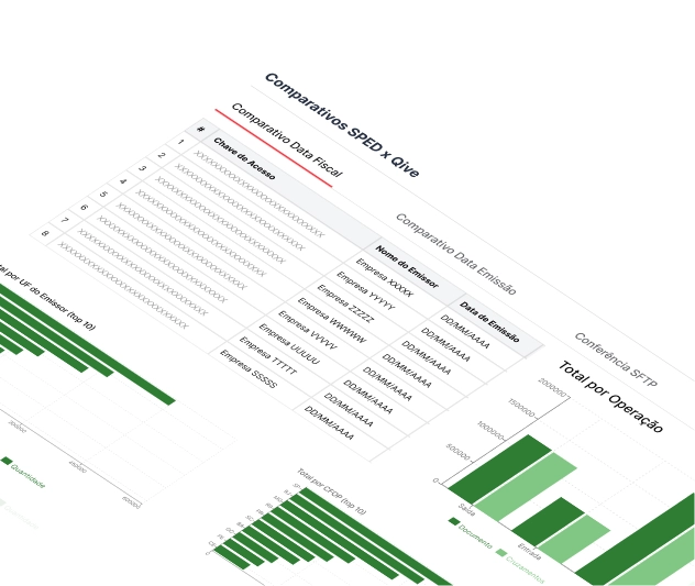 Cada projeto é desenhado a partir do seu objetivo, cruzando DFes da Qive com as suas bases internas para gerar inteligência aplicável no dia a dia