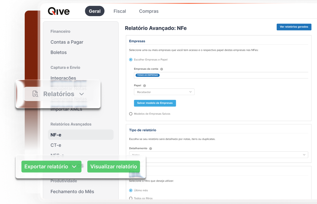 O Relatório Básico da Qive organiza as principais informações dos documentos fiscais em uma visão padronizada, pronta para filtros, conferências e exportação em Excel.