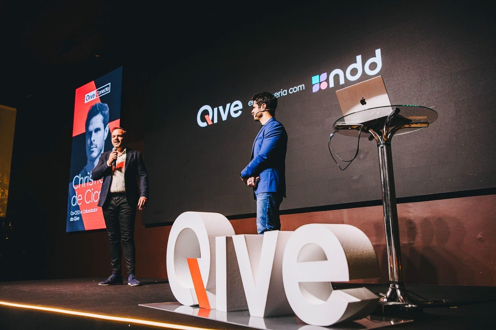 Alceu Keller, Diretor Comercial e Marketing na NDD Tech e Christian de Cico, co-CEO e Cofundador da Qive, durante evento proprietário da Qive, o Qive Conecta. Crédito imagem: Lais Lima Moss