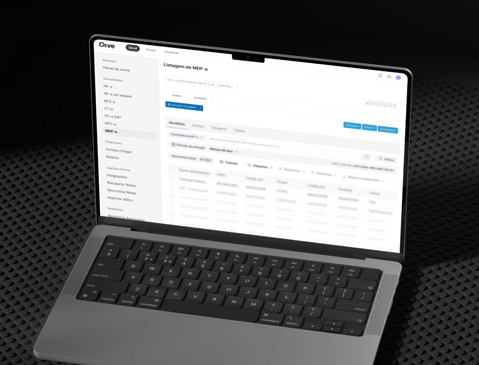 Os MDF-es chegam à Qive via consulta no webservice da SEFAZ, você só precisa cadastrar seu CNPJ e associar seu certificado digital para consultar todas as notas automaticamente e armazená-las em segurança na Google Cloud.
